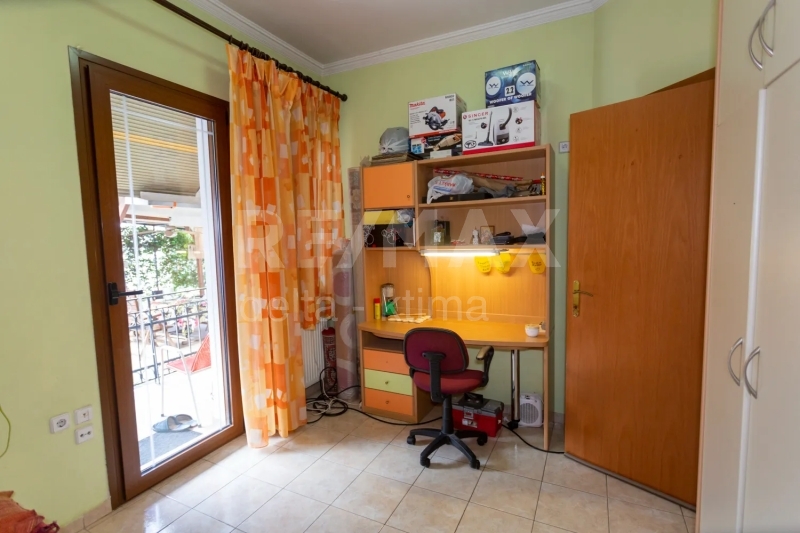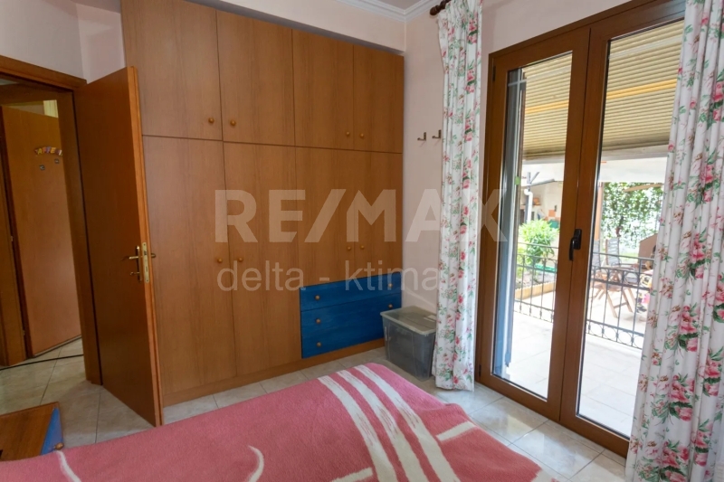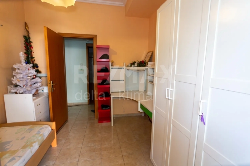 Η πόρτα εισόδου είναι ασφαλείας με τρίαινα, έχει ντουλάπες εντοιχιζόμενες και κλιματιστικό.