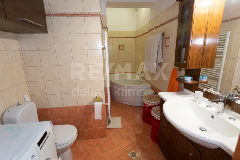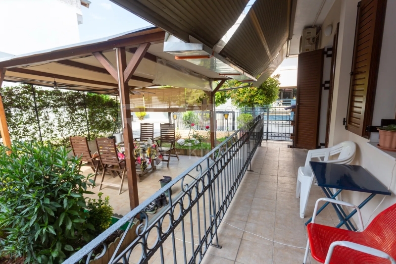 Στην πραγματικότητα μοιάζει πιο πολύ με μονοκατοικία παρά με διαμέρισμα καθώς διαθέτει μια πάρα πολύ όμορφη αυλή με στέγαστρο, λουλούδια, μπάρμπεκιου, αποθήκη 15 τ.μ και στεγασμένο πάρκινγκ 2 θέσεων στάθμευσης.